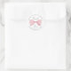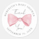 Esta etiqueta elegante para chá de bebê apresenta um laço estilo gravata-borboleta em suave tom rosa água-marinha no centro, adicionando um toque refinado e charmoso. No topo, o nome da mãe e "Chá de Bebê" são exibidos em uma fonte clássica serifa, enquanto a data é posicionada na parte inferior. "Muito obrigado!" é escrito elegantemente em escrita delicada acima e abaixo do laço para um visual equilibrado e estiloso.
