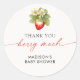 Adesivos de agradecimento divertidos de morango para chá de bebê.