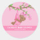 Personalize o chá de bebê com tema de menina com esses adesivos de chá de bebê fofos. O design tem uma bebê afro-americana pendurada em um galho acentuado com corações rosa. Use adesivos para decorar pacotes, como selos de envelope ou distribua como lembrancinhas.delightfuldoodles.