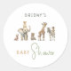 Apresentamos nosso chá de bebê de animais de safári na selva com adesivo redondo clássico de nome, perfeito para uma celebração fofa, caprichosa e neutra em termos de gênero! Ele apresenta um tema moderno de animais de safári com adoráveis criaturas da selva como um macaco, elefante, girafa, leão e zebra. Com sua paisagem simples e inspirada em boho de aquarela natural, essa cena doce é ideal para dar as boas-vindas a um menino ou menina. Esse design é tão encantador quanto atemporal. Por favor, sinta-se à vontade para fazer qualquer pergunta sobre o design do produto; estamos felizes em ajudar!
