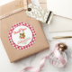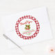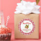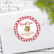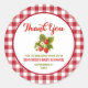 Adoravelmente doce adesivo "obrigado" para chá de bebê com morangos em aquarela - perfeito para etiquetas de saquinhos de brindes para tratar seus convidados do chá com um mimo especial, bem como selos de envelope de cartão de agradecimento expressando um sincero obrigado. Este design apresenta um doce cacho de morangos, um clássico padrão xadrez buffalo de capa de mesa de piquenique vermelha e branca com o texto espiral "Obrigado" combinando com o tema da coleção "doce como um morango".