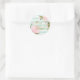 Adesivos de chá de bebê verde menta e rosa com flores rosa suave em um belo fundo de listras de aquarela verde menta. Este adesivo de chá de bebê rosa e verde é facilmente personalizado para o seu evento, basta adicionar os detalhes do evento, estilo de fonte, tamanho e cor da fonte e texto.