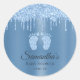 Este elegante adesivo azul de pés de bebê pode ser personalizado com a mãe para ser o nome e a data do chá de fraldas. Este bebê design é excelente para quem ama designs elegantes. Use estes adesivos como selos de envelopes ou etiquetas para os seus favores!