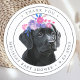 Mantenha seu chá de fraldas com amigos e família para celebrar a chegada de sua nova menina com este adorável adesivo de chá de fraldas preto de laboratório, convites, acessórios de festas e presentes. Uma doce garota de filhote de labrador preto com flores roxas e cor-de-rosa. Este design simples e mínimo é perfeito para qualquer chá de fraldas temático de cachorros. COPYRIGHT © 2020 Judy Burrows, Black Dog Art - Todos Os Direitos Reservados. Chá de fraldas Black Lab Girl Obrigado Clássico Round Sticker