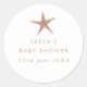 Um doce e na moda e um autocolante de chá de fraldas, perfeito para um garoto, uma garota ou uma celebração neutra de gênero. Apresentando delicadas conchas de cor d'água de vassoura, ele estabelece um tom macio e sereno para acolher seu pequeno com amor.