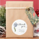 Tema moderno e boho chá de fraldas favorece adesivo com ilustração aquosa do balão azul com folhas botânicas verdes. O texto diz "obrigado você".