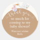 Expresse a sua gratidão com o nosso sincero Obrigado, Sticker. Este adesivo elegante apresenta uma cegonha fofa e uma mensagem sincera, agradecendo aos seus convidados por estarem presentes no seu chá de fraldas.
