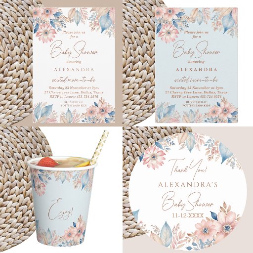 Celebre a chegada do seu pequeno com este Chá de fraldas Floral Personalizado Boho Obrigado Sticker. Esta elegante e feminina design apresenta um belo arranjo de flores e folhas cor-de-rosa, bege e azuis empoeiradas, complementando perfeitamente a excitada futura mãe. O fundo branco nítido melhora o charme rústico e boêmico, fazer-o como uma adição perfeita aos seus favores de chico. Expresse sua gratidão em estilo com este belo obrigado que você cola, ideal para adicionar um toque de sofisticação ao seu Chá de fraldas Party, Lunch ou Picnic.