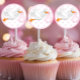 Chá de fraldas Cupcake Tópicos adesivos. Volte para trás em uma palhinha ou pau pirulito. Fique em cupcakes decorados.