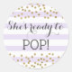 Chá de menina ou adesivos redondos borrifados "Ela está pronta para Pop" com listras roxas brancas e lavandas e brilho de falso confetti. Você pode usá-las para bolsas de papagaios, pequenas garrafas de champanhe ou outros favores de hóspedes de sua escolha. Preencha o seu tema com convite, sinais, decorações e muito mais da minha Lavanda e Coleção Dourada.
