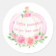 Estes Chás de fraldas têm uma abóbora rosa e flores. Dizem: "Uma abóbora está a caminho! Original Watercolor © Michele Davies.