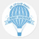 Para cima e para longe, novo menino, design de balão azul de ar quente para chá de fraldas, cartão, adesivo