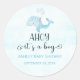 Um adesivo clássico redondo com chá de fraldas de baleia de bebê giro, de aquarela. Itens correspondentes disponíveis.