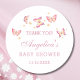 Personalize este Chá de fraldas da Borboleta Obrigado Sticker, e adicione um toque elegante e feminino aos favores do seu chá. Este adesivo branco, com flores delicadas e borboletas cor-de-água, poeirentas e cor-de-rosa, a flutuar contra um fundo branco nítido, é perfeito para expressar gratidão aos seus queridos convidados.