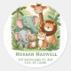 Adicione um toque de charme ao seu evento com este adorável adesivo redondo clássico com animais de safari acolhedores, incluindo uma girafa, elefante, hipopótamo, leopardo e leão, rodeados por folhas verdes e exuberantes. Perfeito para festas, chás de fraldas ou eventos infantis de matas ou safari, este adesivo traz calor e diversão a qualquer celebração.
