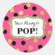 Chá de fraldas Ela está pronta para POP a favor de adesivos de etiquetas em cor-de-rosa quente fuchsia com confete preto e dourado, por favor note que brilho é apenas efeito fotográfico. Uma maneira excelente de decorar favores de chá de fraldas de pipoca.