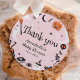 Adicione um toque doce ao seu chá de fraldas de halloween com este obrigado fantasma rosa personalizado que você cola. Perfeito para ideias de chás de fraldas temáticos de halloween, este adesivo redondo assustador combina com ideias de chá de fraldas rosa e pastel halloween. Ideal para pequenas ideias chás de fraldas e temas como "um pequeno bu está quase a ser devido", convém a ideias chás de fraldas assustadoras, ideias de chás de fraldas de bruxas, e o bebê está a criar ideias de chá. Uma escolha bonita para um bebê que cria chá, um bebê está a criar ideias de chá de fraldas, e muito mais!