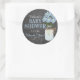 Chic popular, visual vintage do quadro, Chá de fraldas convidado a favor em azul. Um pote de pedreiro rústico cheio de flores azuis, chalkboard parece fundo. Personalizado com o nome da futura mãe, data de chá de fraldas e "obrigado você". Adicionar produtos correspondentes! Por favor, visite minha loja "The Hungarican Princess" em www.zazzle.com/hungaricanprincess*. Olhe na minha categoria de departamento "Oh Baby". Parabéns!