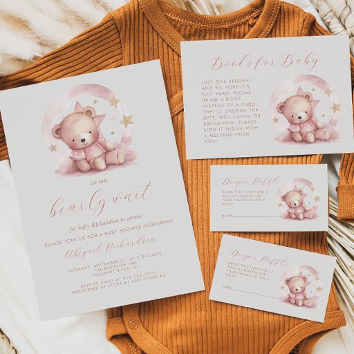 Cute Pink Watercolor Teddy Bear Girl Baby ShowerCriado por Akhates Designs