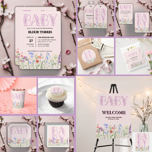 Wildflower Purple Floral Baby Monogram Baby ShowerCriado por Elixir Torres