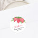 Este adesivo de chá de fraldas bonito é decorado com morangos de aquarela e tipografia de na moda. Facilmente personalizável. Original Watercolor © Michele Davies.