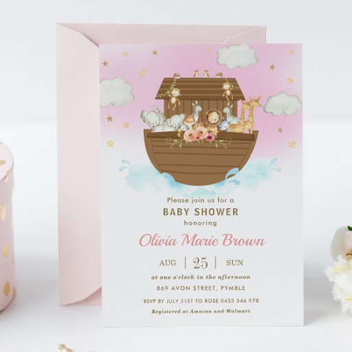 Adesivo Chá de fraldas de Noah com Animais Rosa de Arca Ob
