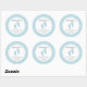 Um adesivo redondo por favor ao chá de fraldas com pés de bebê azuis design e fundo de polkadot.