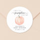 Um adesivo bonitinho, neutro em relação ao gênero, para seus convites para chuveiros de bebês, favoritos para festas e cartões de agradecimento com uma aquarela cor de laranja pastel de uma abóbora e "Uma Pumpkin Doce Pequena Está a Caminho" escritos numa mistura de tipografia de cinza e um roteiro de na moda com pestanas. Especificar o sexo do bebê, se desejado (por exemplo, "está a caminho").