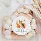 Etiquetas de chá de fraldas, cortantes, de madeira, com uma ilustração aquosa de um esquilo-bebê cercado por folhas de outono em tons de laranja, vermelho e amarelo. Personalize os adesivos de chá de fraldas de esquilo com o nome da futura mãe e a data do chá de fraldas. Projetado para coordenar com a nossa coleção de Chás de fraldas de Animais da Floresta em Cuta.