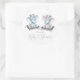 Adesivos de revelação do sexo para chá de bebê elefante com adorável príncipe elefante bebê menino e princesa elefante bebê menina sentados em almofadas prateadas elegantes contra um fundo branco. Estes adesivos de revelação do sexo para chá de bebê elefante são facilmente personalizados com seu texto. Você também pode alterar a cor do fundo.