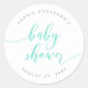 Chá de fraldas adesivo com as palavras "Chá de fraldas" num texto cursivo relaxado em menta contra fundo branco. Personalize-o substituindo o texto do marcador de posição. Para obter mais opções, como alterar a fonte e seu tamanho/cor, expanda a curva/contrato ou o espaçamento entre letras, clique no botão "Personalizar". *Observe que a Marca d'água do Zazzle que aparece na visualização de zoom NÃO aparecerá no produto impresso final. © Rosewood e Citrus
