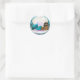 Chá de fraldas de sereia com adorável sereia americana étnica africana vestindo uma tiara e pérolas em um bonito azul lacrimogênio e roxo sob o fundo do mar. Você pode adicionar texto para personalizar esses adesivos de chá de fraldas de sereia loira.