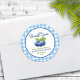 Um adesivo de chá de fraldas de mirtilos de obrigado doce - perfeito para etiquetas de sacos de tratamento para os seus convidados de chá com um tratamento muito especial, assim como selos de envelope de cartões de agradecimentos que expressam um obrigado sincero. Esta design apresenta um doce aglomerado de mirtilos, um padrão de verificação de búfalos de cobrir de piquenique branco e azul-bebê com o texto suave "Obrigado" que corresponde ao tema da coleção de amora doce de mirtilo.