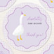 Adicione um doce toque final aos seus favoritos para festas com este adorável obrigado que você cola com um ganso pintado à mão, uma moldura ondulada e um fundo de gingham lilás pastel. Projetado para coordenar com a nossa coleção de chás de fraldas de Pequenos Gansos, é perfeito dar boas-vindas a meninas e meninos. Personalize com sua própria mensagem!