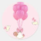 Boas chás de fraldas para presentes, etiquetas de festa e selos de envelope com bebê recém-nascido, pássaros e balões rosa.