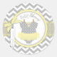 Cinza doce e impressão branca com sotaques amarelos e um tutu de jumper de bolinhas e etiqueta de presente de chá de fraldas de fita 3D.