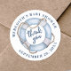 Este adesivo de chá de fraldas com tema náutico apresenta um anel de vida azul em negrito no centro, com o dentro escrito "obrigado você" em uma fonte azul escura. O nome da mãe e o "Chá de fraldas" são apresentados no topo numa fonte clássica azul escura de serif, enquanto a data é apresentada no fundo numa mistura da mesma serifa e da mesma tipografia de scripts. O design combina elementos náuticos eternos com um na moda, um layout mínimo, fazer perfeito para um tema Ahoy, It's a Boy! ou qualquer chá de fraldas inspirado no oceano. Personalize as fontes, as cores e o texto para corresponder ao seu evento!