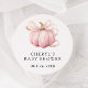 Este elegante adesivo de chá de fraldas "A Little Pumpkin on the Way" apresenta uma bela ilustração aquarela de uma abóbora com uma delicada fita rosa, perfeita para comemorar a chegada de um pequeno na temporada de outono.