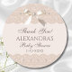 Personalize este obrigado de Chá de fraldas Satin Elegante que você cola, projetado para aqueles que adoram o charme eterno do estilo Regência. Este adesivo elegante apresenta um arco luxuoso de fita de cetim adornado com uma pérola delicada, elegantemente entrelaçada com um local de colheita bege. Comparado a um sofisticado fundo cor-de-rosa rosa pastel, ele expele uma graça refinada que lembra a amada série Bridgerton. Perfeito para favores, este adesivo é uma maneira sincera de dizer "obrigado você". Pense em arcos, fita de cetim, pérolas e um lugar elegante - uma bela adição ao seu Lace Chá de fraldas Party, Lunch ou Picnic que os convidados apreciarão.
