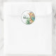 Este adesivo é para obrigado dos presentes no evento. Ele segue o mesmo padrão de cor da coleção, especialmente os tons verdes. Um círculo funciona para focar a atenção na design. A arte é feita em aquarela digital, com fundo branco e a tipografia é divertida e colorida. É um produto especial para o chá de fraldas da mulher aventureira, que ama a vida selvagem, mas também coisas bonitas e kawaii, tem um chá de fraldas onde ela se sente como se estivesse em uma selva real