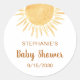 Este adesivo de Chá de fraldas é decorado com uma aquarela solar e tipografia de na moda. Perfeito para um chá de fraldas neutro em termos de gênero. Facilmente personalizável. Use a Ferramenta Design para alterar o tamanho, o estilo ou a cor do texto. Porque nós criamos a nossa trabalho de arte, você não encontrará esta imagem exata de outros designers. Original Watercolor © Michele Davies.