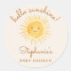 Este chá de fraldas bonito é decorado com um sol de aquarela e diz "Olá Sunshine!" na tipografia de na moda sobre um fundo de creme macio. Perfeito para um chá de fraldas neutro em termos de gênero. Facilmente personalizável. Original Watercolor © Michele Davies.