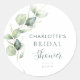 Adesivo de chá de noiva temático botânico moderno e elegante com eucalipto verde sobre fundo branco. Altere facilmente os detalhes clicando no botão "Personalizar".