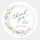 Adesivos elegantes para chá de noiva apresentam uma coroa de flores silvestres em aquarela, agradecimento e sua mensagem em letras sofisticadas. ITENS COINCIDENTES em nossa coleção.