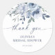 Adesivo de chá de noiva de agradecimento com caligrafia elegante e floral dusty blue.
