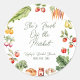 Adicione o toque final perfeito aos brindes do seu chá de noiva com esses adesivos redondos clássicos "Fresco do Mercado"! Com um charmoso design inspirado na feira do produtor, com frutas e legumes vibrantes, esses adesivos trazem um toque rústico e elegante para a sua celebração. Perfeitos para selar sacolas de brindes, potes ou presentes, são uma maneira encantadora de unir o seu tema.