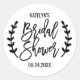 Estes galhos brancos de oliva branca são perfeitos para um chá de casamento de moda. A design apresenta tipografia divertida, escrita à mão, com deliciosos loops e espirros cercados por simples folhas de riso. Personalize os autocolantes com o nome da noiva-a-ser e a data do chá.