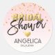 Adicione esses adesivos / etiquetas elegantes, mas modernos, para chás de panela personalizados aos seus convites, cartões e favores de presentes. Letras modernas de escrita de pincel e matizes cor-de-rosa rosa com folha de ouro falsa e coração. Personalize-os adicionando nome e data das noivas.