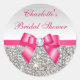 Adesivos personalizados elegantes para chás de panela, ou qualquer evento, com lindas sequências de imagens prateadas prateadas joias, padrão de joias, um arco e fita rosa brilhante e quente, bem como uma joia de bling digital de diamante bonito e um texto rosa em um fundo de imagem de gradiente prateado. Observe que estes são gráficos impressos. Eu tenho produtos correspondentes para ir com esses adesivos elegantes/selos de envelope na minha loja. Bonita, chique, moda, adesivos modernos para qualquer evento. O texto, a fonte e a cor da fonte podem ser personalizados. Se precisar de ajuda para personalizar seu produto, entre em contato comigo através da minha loja. Ficarei feliz em ajudar.