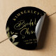 Tendy elegante adesivo preto elegante para um chá de panela de luxo vintage decorado com um falso guião de ouro e marfim e folhagem botânica verde sage. +++++++++ Observe que a cor de fundo pode ser alterada para corresponder ao seu esquema de cor de casamento. Se for confortável, você pode alterá-lo depois de selecionar a opção PERSONALIZAR TI. ++++++++ Se precisar de ajuda, envie uma mensagem ao designer ou acesse o serviço Free Live Designer do Zazzle.